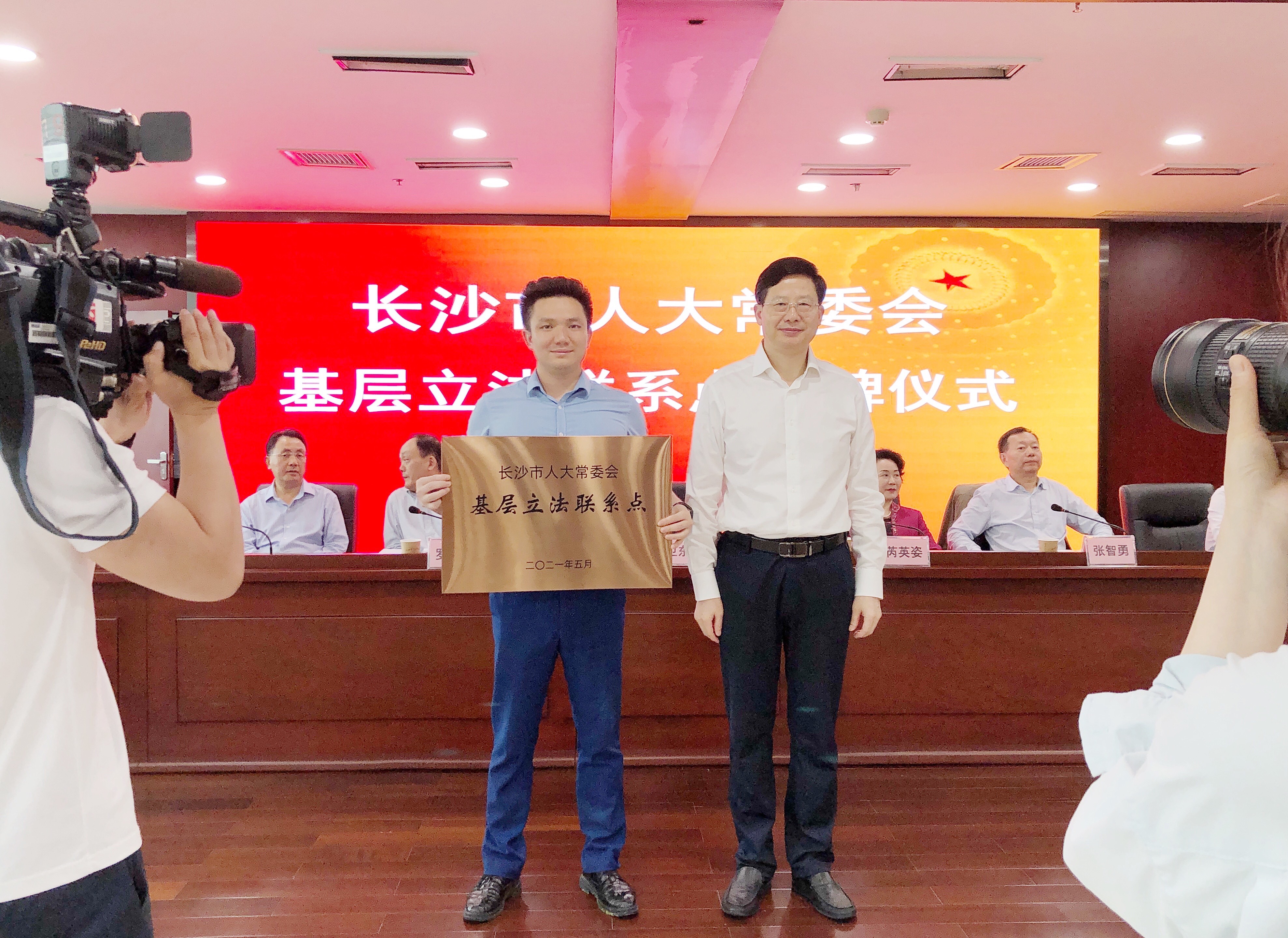 5月26日,长沙市人大常委会举行基层立法联系点授牌仪式。市人大常委会党组书记、主任谢卫东为基层立法联系点授牌并讲话,副主任芮英姿、罗衡宁、张智勇、袁黎明,秘书长柳美景参加。
